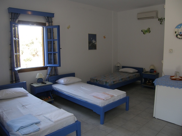 Με δεδομένη την αγάπη μας και το σεβασμό μας προς την ανάγκη σας να αποδράσετε από την πραγματικότητα που περιβάλλει τον καθένα μας, σας περιμένουμε να επισκεφτείτε τα δωμάτιά μας που βρίσκονται στον κεντρική επαρχιακή οδό Καμαρών-Απολλωνίας. Διακοσμημένα με μεράκι και αγάπη προσφέρουν ξεκούραση και ηρεμία. Αποτελούνται από ένα δίκλινο και ένα τρίκλινο δωμάτιο και είναι εφοδιασμένα με λουτρό, ψυγείο, τηλεόραση κλιματισμό (A/C) και ευρύχωρη βεράντα για να απολαύσετε τον καφέ σας και να διαβάσετε το βιβλίο σας.