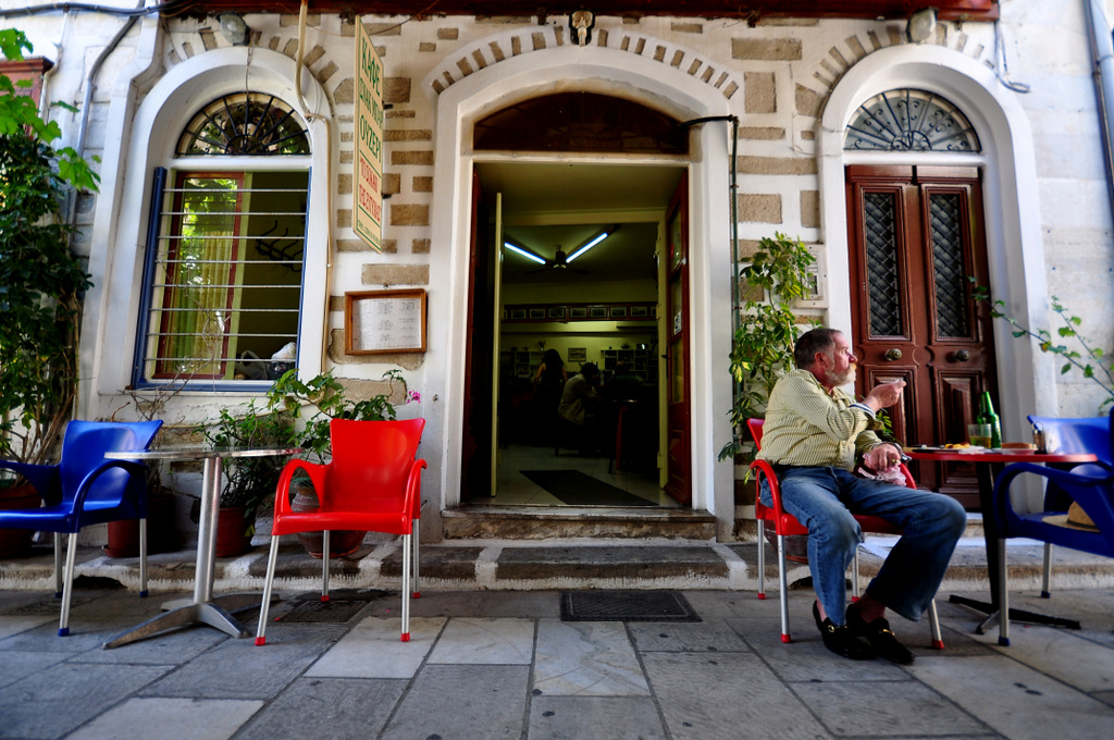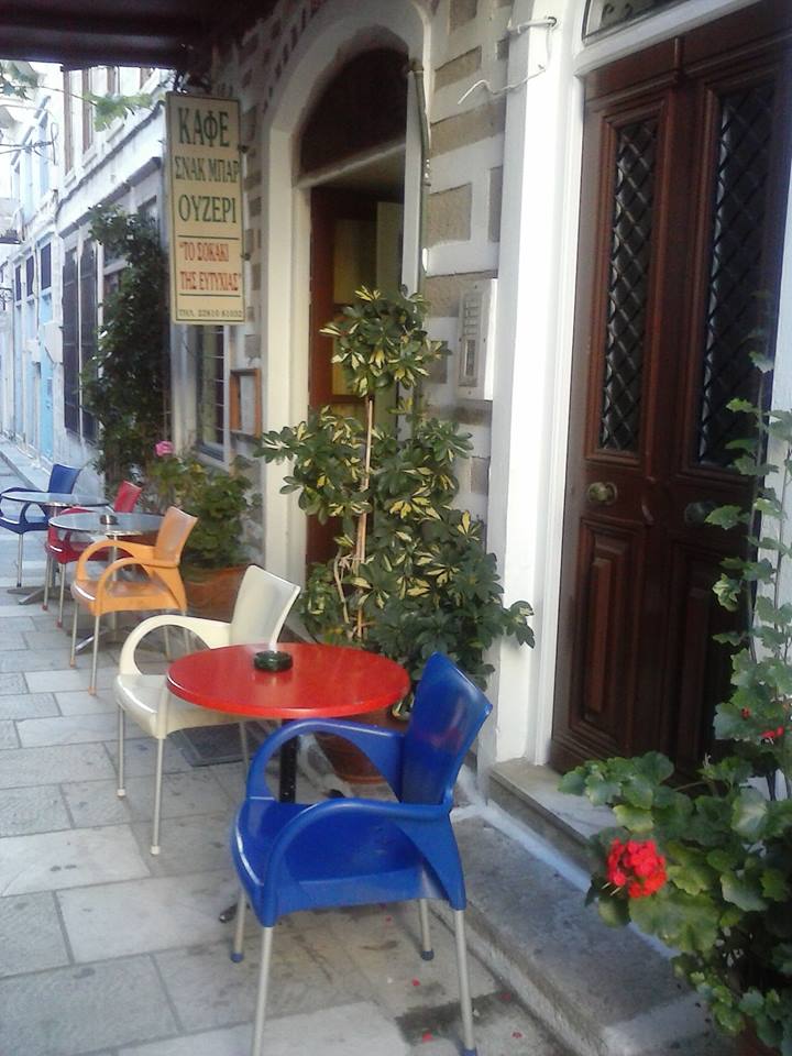 Το καφενείο "Το σοκάκι της Ευτυχίας" βρίσκεται μέσα στην καρδιά της αγοράς της Ερμούπολης.