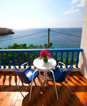 Τα studios - διαμερίσματα Pitsa και George είναι κτισμένα σε μια καταπληκτική τοποθεσία στο Μπατσί και προσφέρουν ασύγκριτη θέα στα γαλάζια νερά του Αιγαίου.