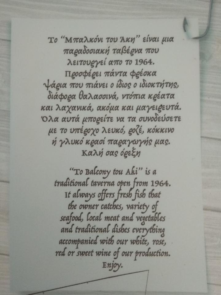 The Balcony of Akis is a traditional tavern operating since 1999.